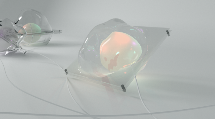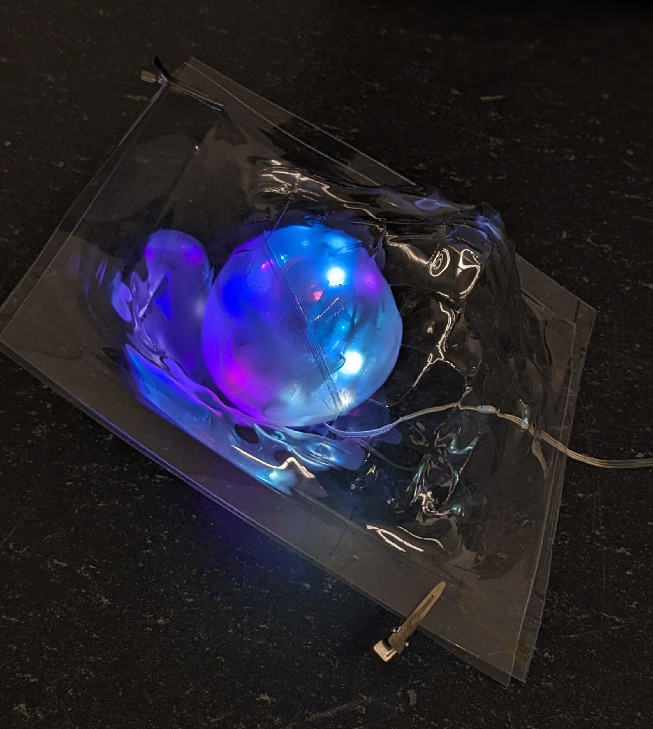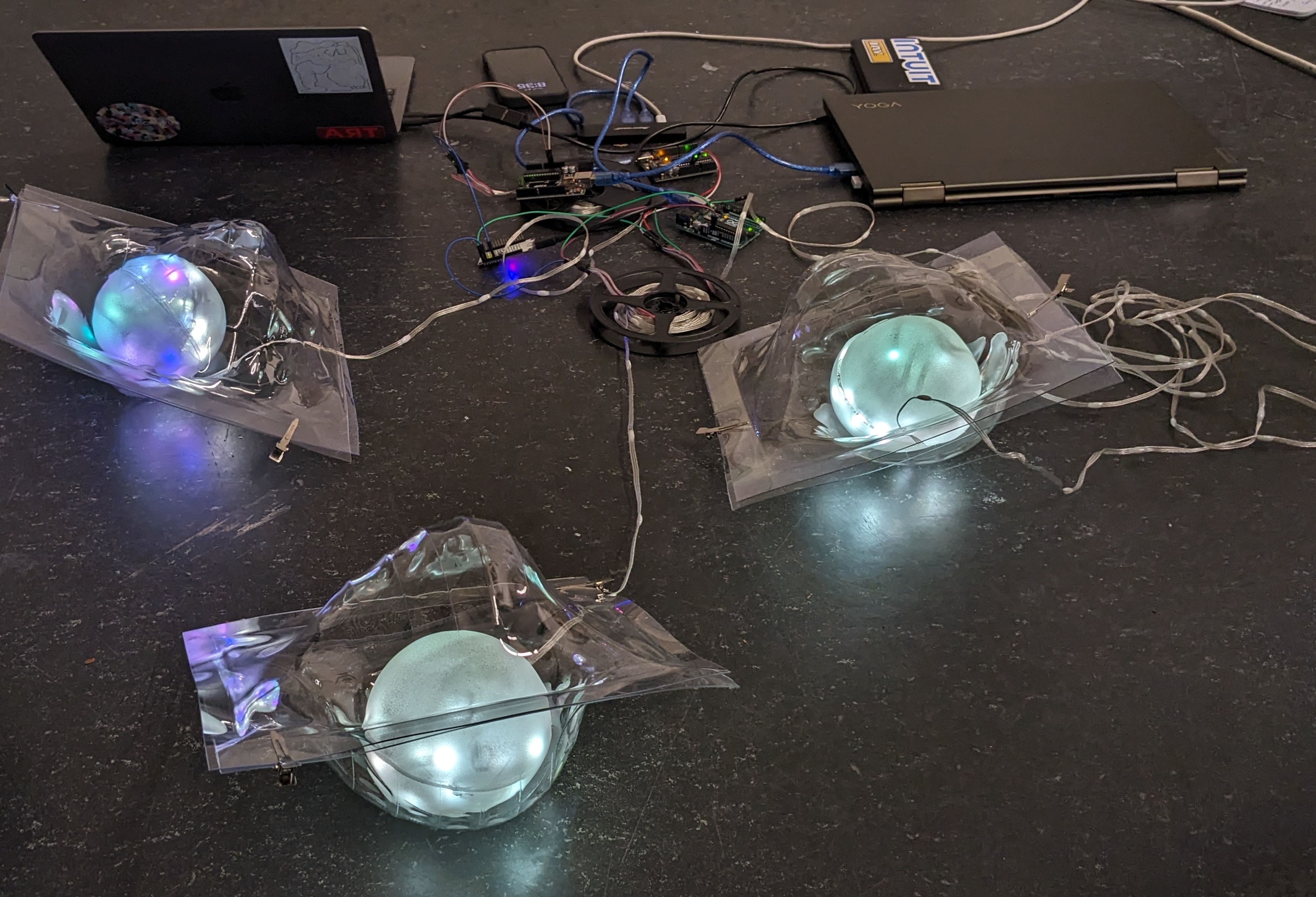 The project has two components: a touchscreen interface and LED-mapped qubits. In the fleeting states world, qubits react to user interactions through changes in light and sound.