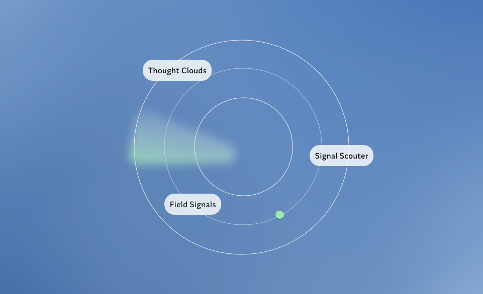 Field Signal is an antenna that catches ambient nature sounds such as bird calls, wind, and water. As you move your finger further from the screen, the sound becomes wider and more ambient. Moving closer makes the sound sharp and rhythmic. Trace a circle in the air to tune into different frequencies.